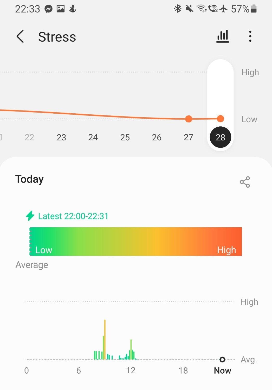 What it is: Stress estimate based on HR + HRV, via Samsung Health.