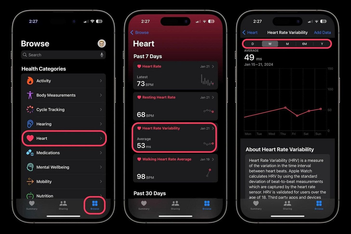 How to use: Data visible in Health app; no stress number, third-party apps required.